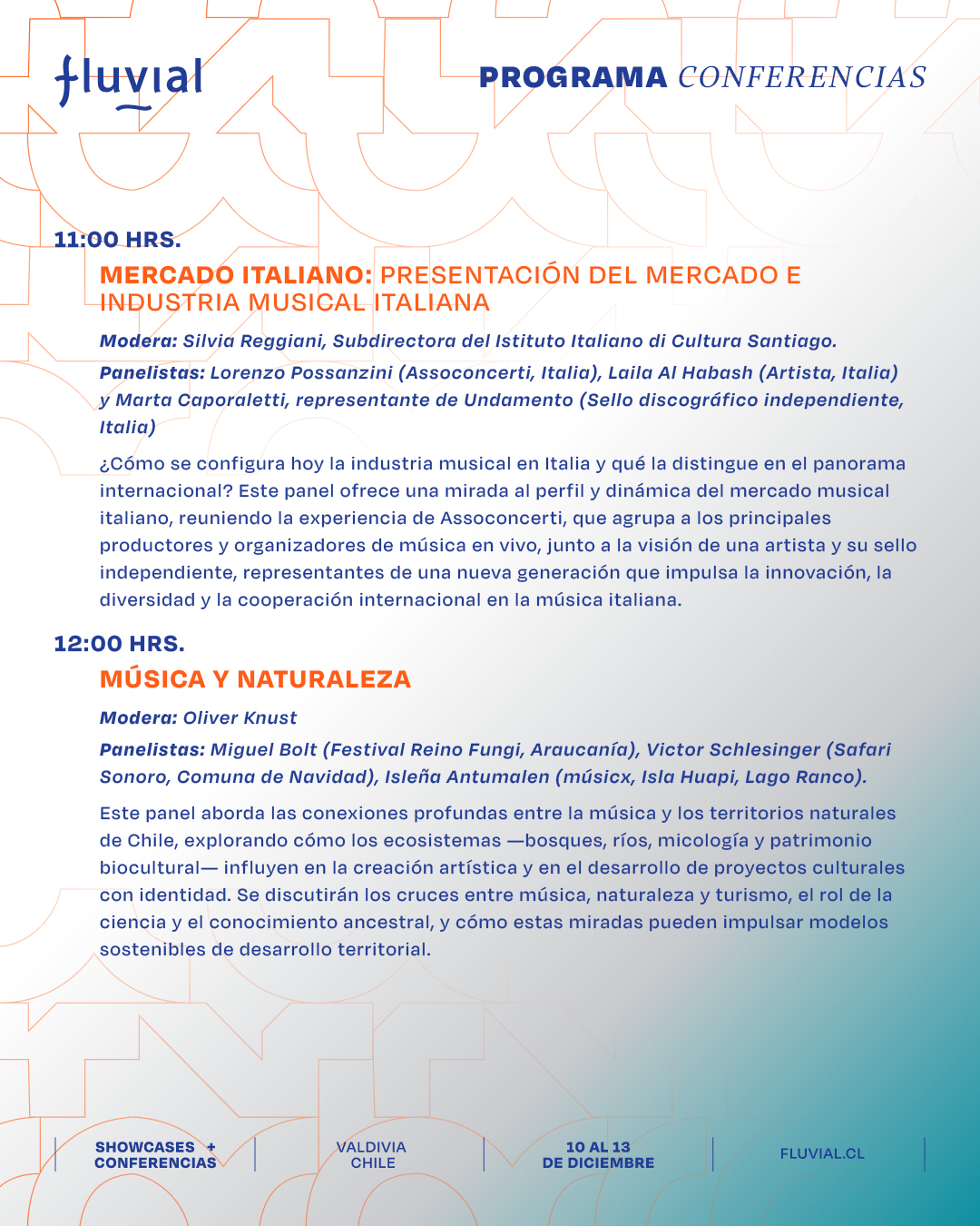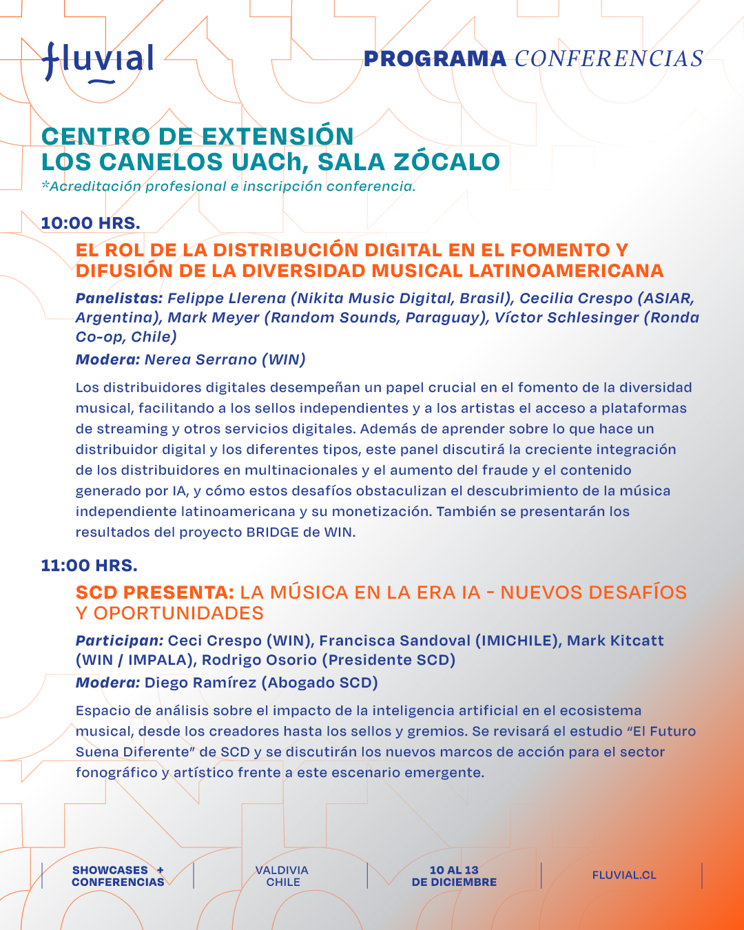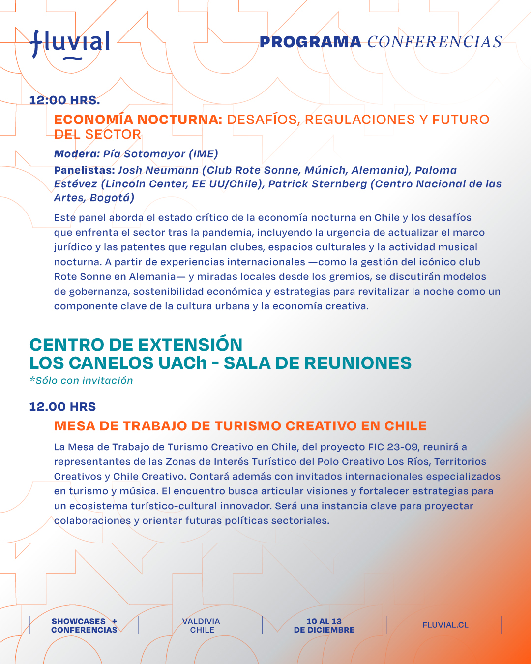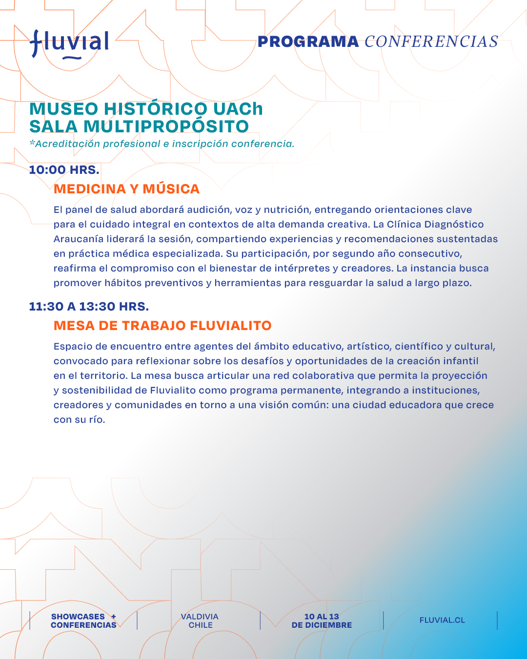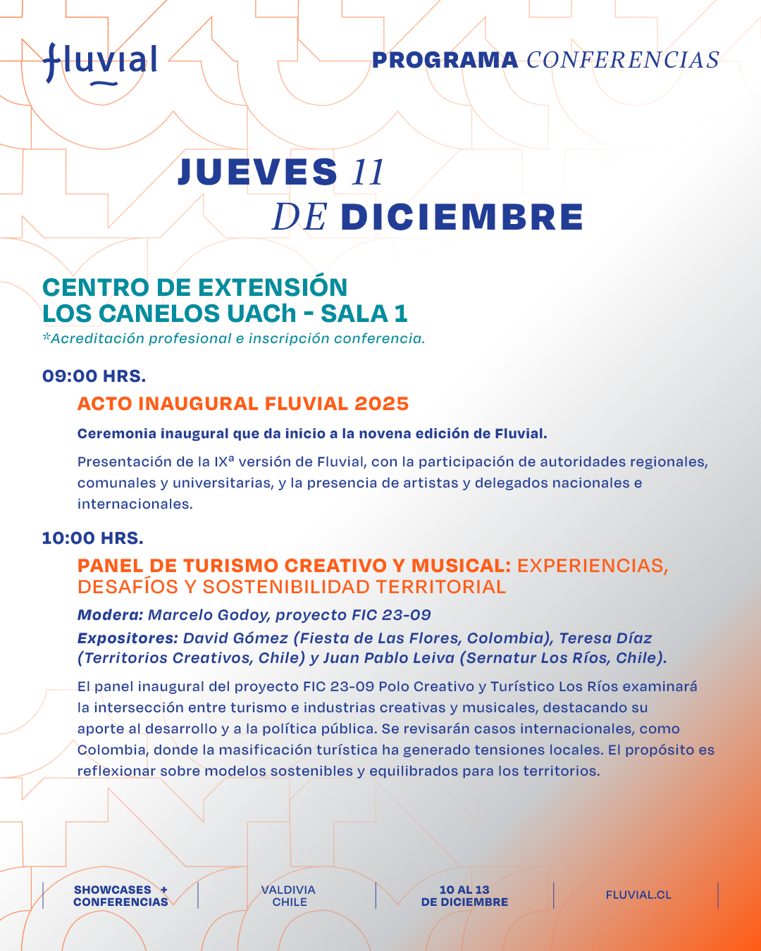Te presentamos el programa de las actividades formativas, charlas, paneles y mesas de trabajo de Fluvial para que puedas organizar tus tiempos y participar en las actividades que más te interesen.