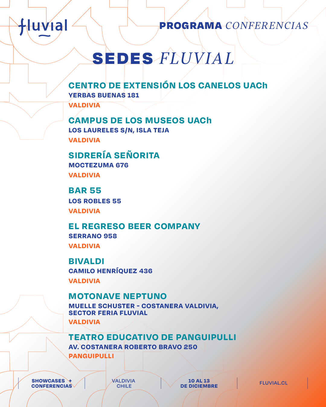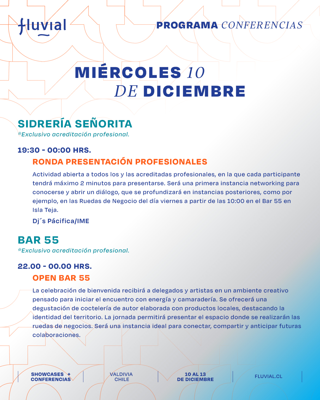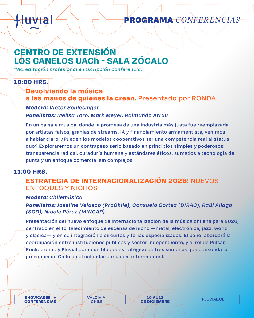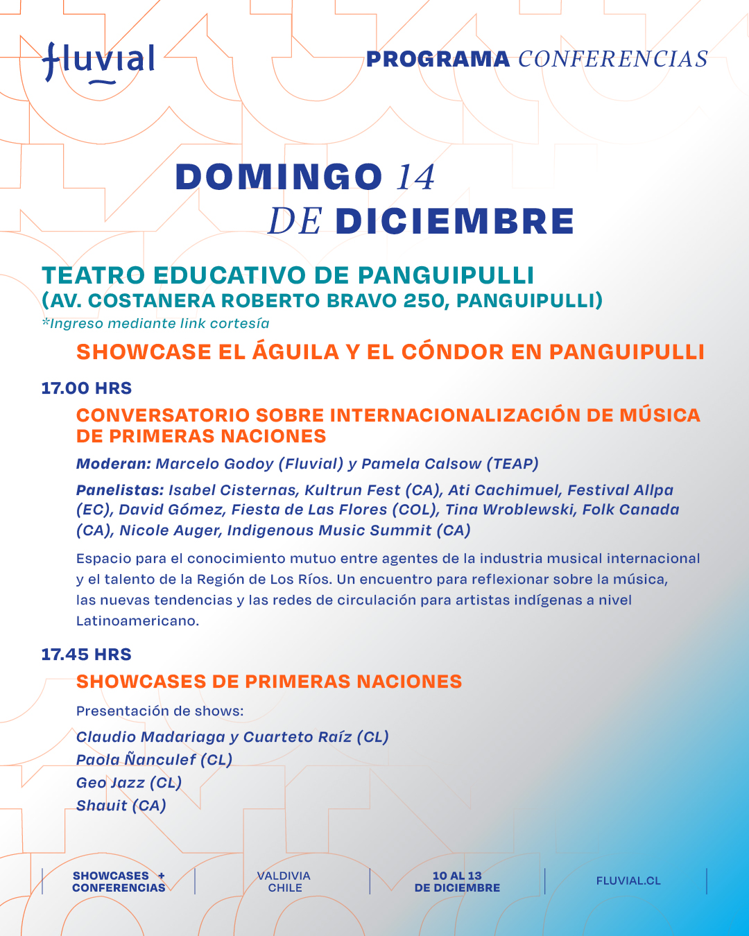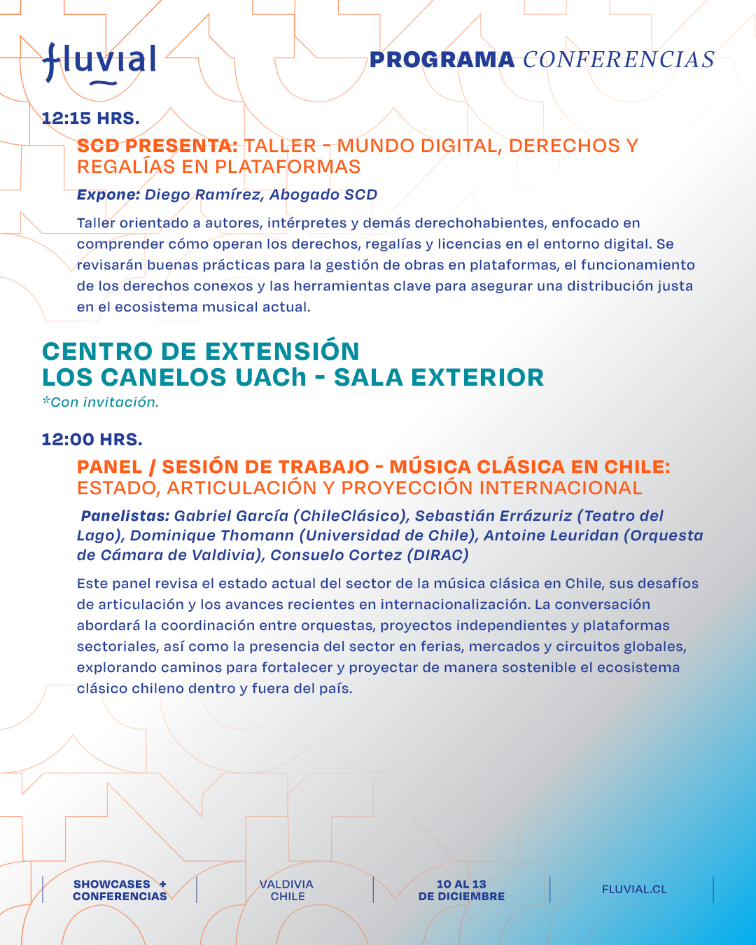 Te presentamos el programa de las actividades formativas, charlas, paneles y mesas de trabajo de Fluvial para que puedas organizar tus tiempos y participar en las actividades que más te interesen.