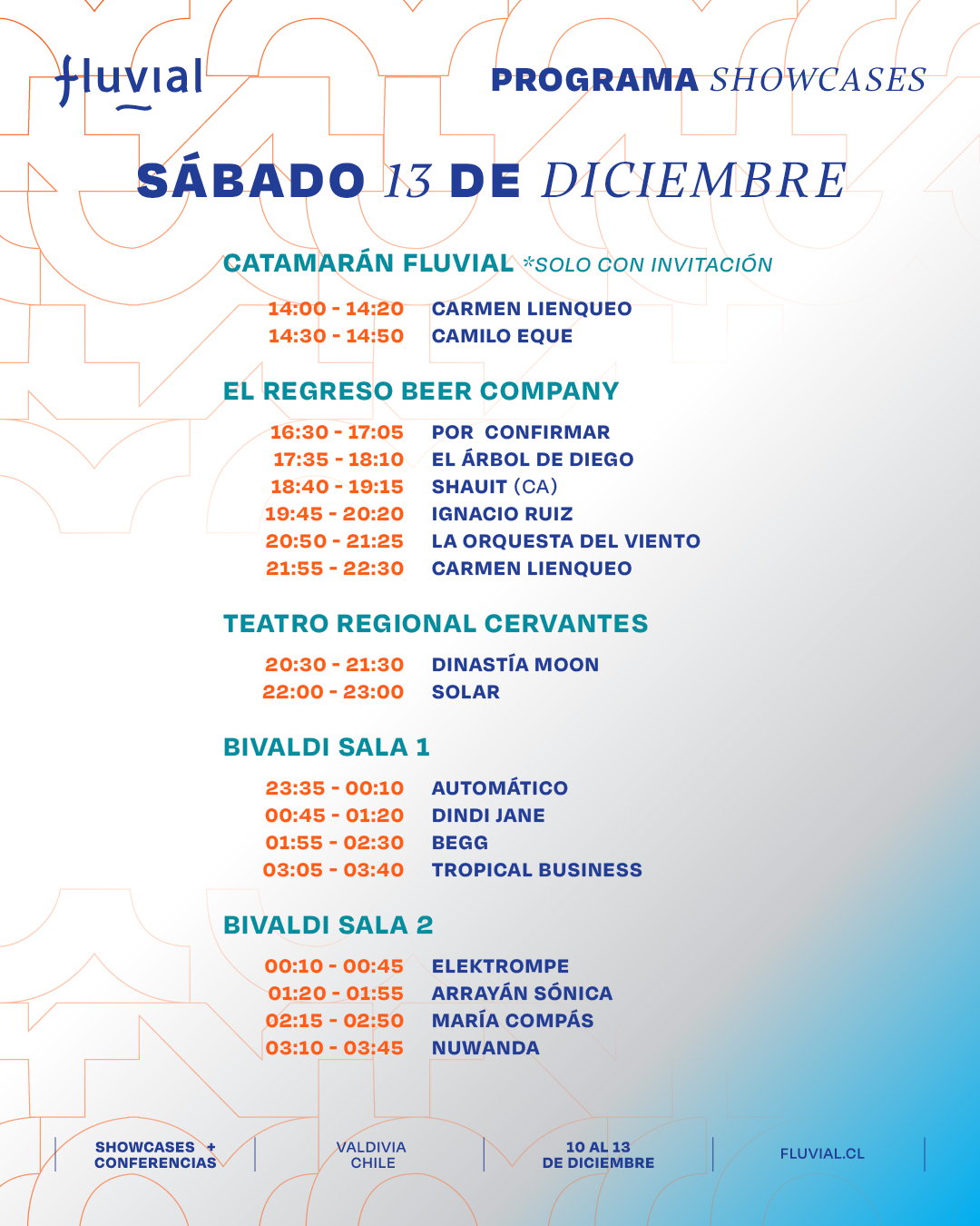 Te presentamos el programa de los Shows en Vivo de Fluvial para que puedas organizar tus tiempos y asistir a los que más te interesen.